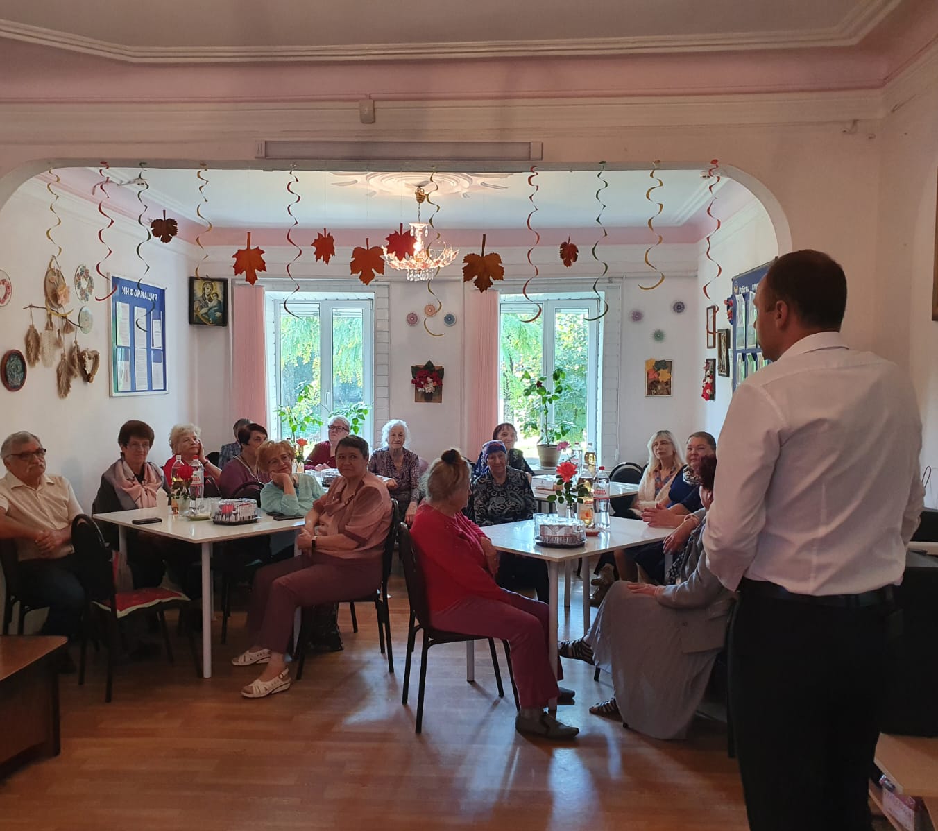 В канун Международного дня пожилых людей в Университете третьего возраста МБУ ЦСОН г. Новочеркасска прошел традиционный праздничный огонек «Поет душа, танцует осень». Слушателей Университета поздравили заместитель главы Администрации Новочеркасска К.С.Хмельницкий и директор Центра Ю.В.Коробов.