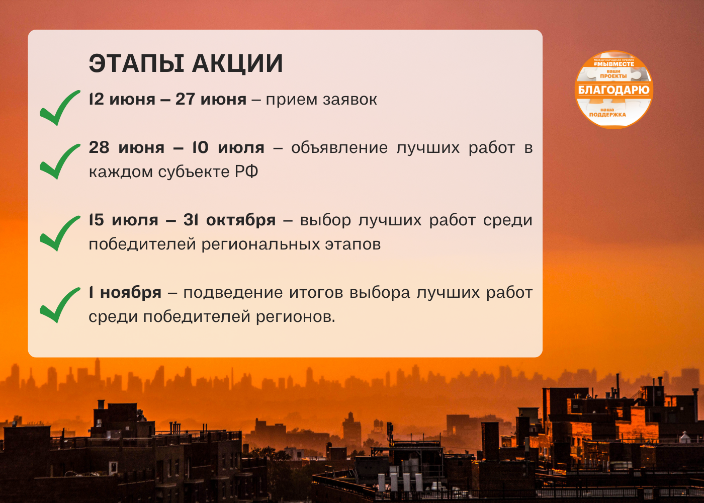 12 июня 2022 года, в рамках проведения Международной Премии #МЫВМЕСТЕ-2022, стартовала акция «Благодарю!».