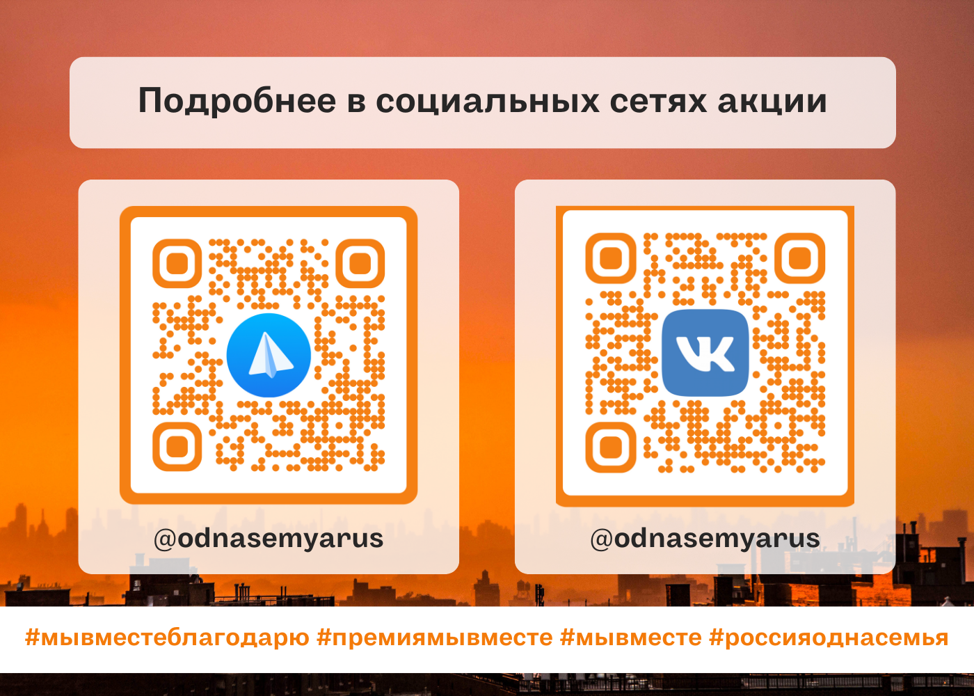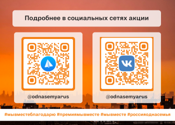 - Подпишитесь на группу акции ВКонтакте (https://vk.com/odnasemyarus) и Telegram-канал (https://t.me/odnasemyarus).