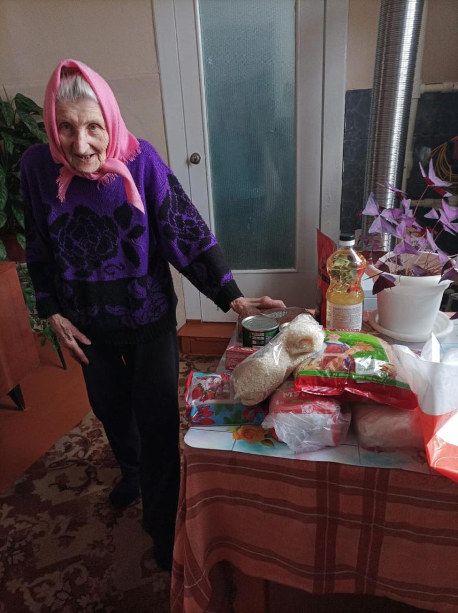 Эта прекрасная женщина в свои 84 года активно принимает участие в волонтерской деятельности. Она регулярно помогает, в этот раз её помощь бесценна она сшила 120 трусов для бойцов на фронт! За что ей большая благодарность и небольшой гостинец.