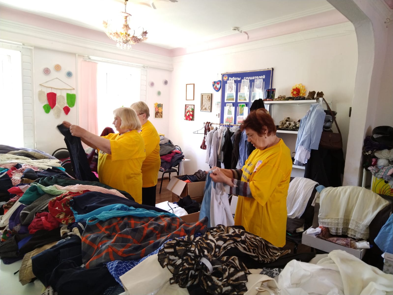 В пункте принимаются и сортируются вещи для временных переселенцев, прибывших в Новочеркасск. Большой вклад в эту важную работу вносят «серебряные» волонтеры.