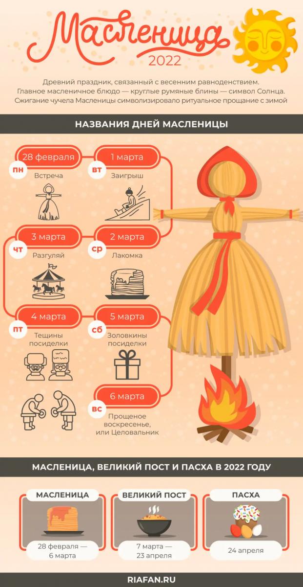 В этом году 28 февраля – начало Масленой недели. Масленица – просторечное название Сырной седмицы - подготовительная неделя к Великому посту, посвящена в христианском смысле одной цели – примирению с ближними, прощению обид, подготовке к покаянному пути к Богу. В продолжение масленицы не едят мясо, но можно употреблять рыбу и молочные продукты. Отменяется пост в среду и пятницу.