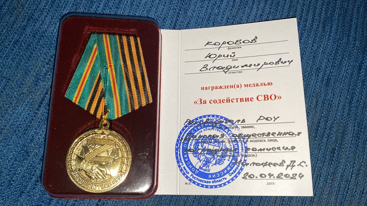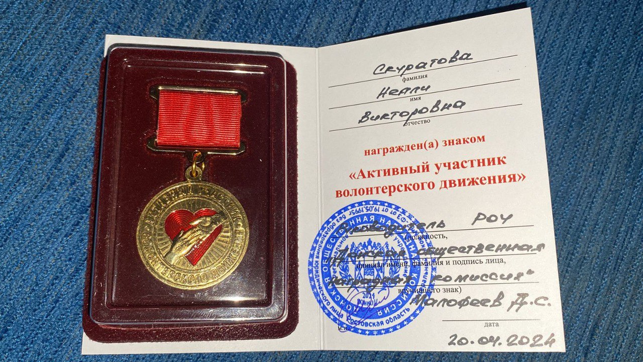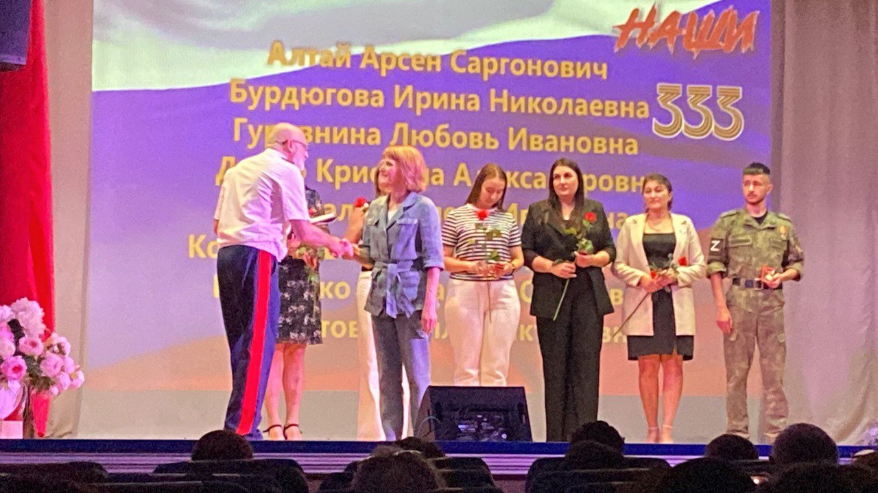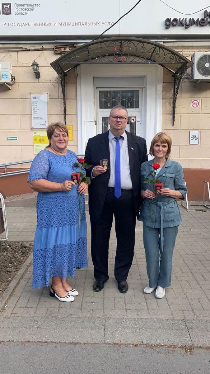12.06.2024г. на торжественном мероприятии ко  Дню России  в здании Центра эстетического воспитания были награждены медалями директор МБУ ЦСОН г.Новочеркасска Юрий Коробов «За содействие СВО», сотрудники Центра Скуратова Нелли и Бурдюгова Ирина за «Активное участие в волонтерского движения».