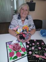 В Университете третьего возраста МБУ ЦСОН г. Новочеркасска прошла творческая мастерская «Наши руки не для скуки!» Слушатели Университета представили свои творческие работы: вышитые бисером иконы, картины, покрывала и салфетки в технике пэчворк, мягкие игрушки и многое другое.