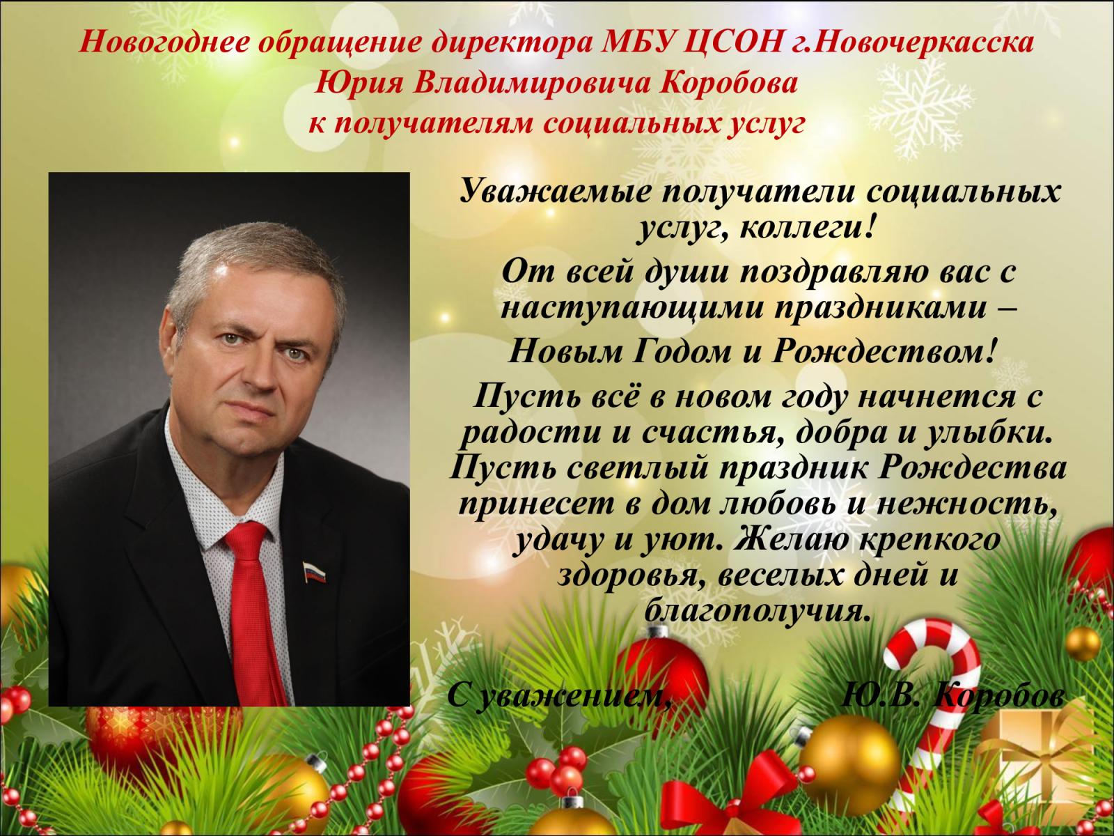 Новогоднее обращение директора МБУ ЦСОН г. Новочеркасска Юрия Владимировича Коробова к получателям социальных услуг