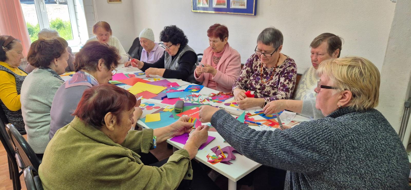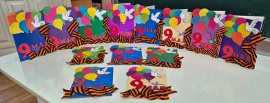 "Серебряные волонтеры" изготовили поздравительные открытки ко Дню Победы для участников специальной военной операции.