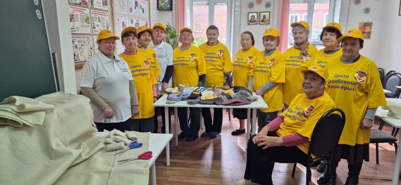 С наступлением холодов Серебряные волонтёры решили связать тёплые носки для бойцов, которые участвуют в специальной военной операции. Они также продолжают изготовление армейского сухого душа — специальные гигиенические наборы, которые помогают солдатам поддерживать чистоту в полевых условиях.