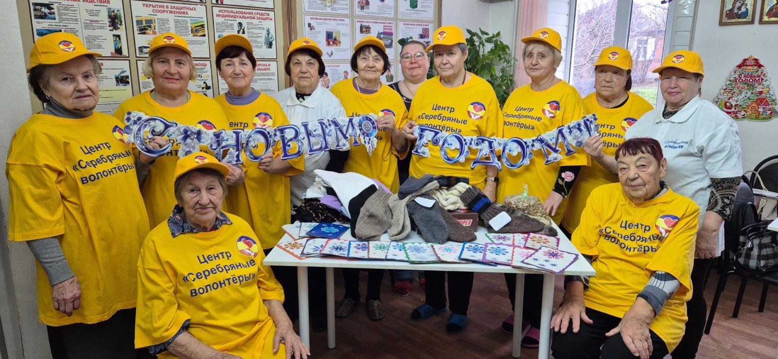 В преддверии новогодних праздников "Серебряные волонтеры" создали праздничные открытки, подготовили различные гостинцы и связали теплые носки для бойцов СВО.