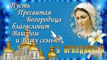 Поздравляю с Благовещением и желаю в этот светлый праздник чистых помыслов, мира в душе, добрых гостей в доме и только радостных новостей. Пусть Пресвятая Богородица помогает в любом деле, оберегает и спасает. Счастья, любви и веры!