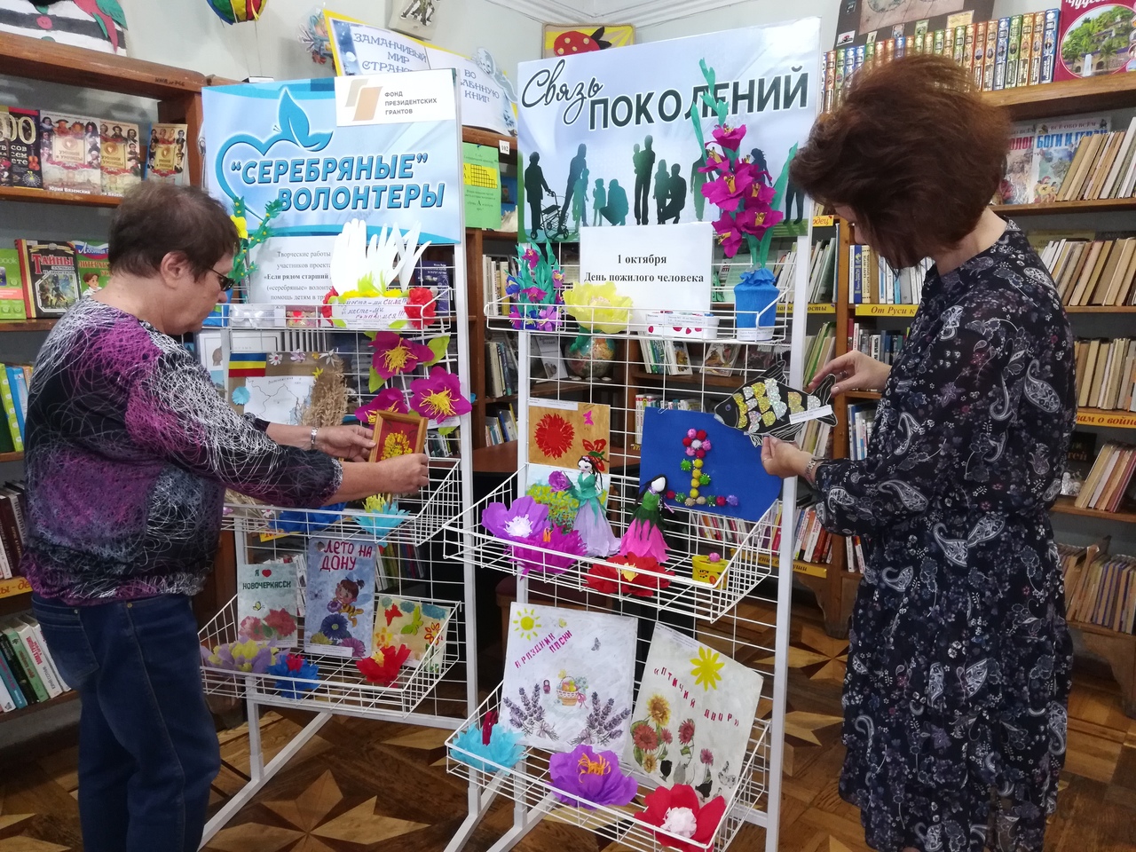 В центральной детской библиотеке им. А.Гайдара организована выставка творческих работ участников проекта «Если рядом старший друг» («серебряные» волонтеры в помощь детям в трудной жизненной ситуации), реализуемого общественной организацией «Аксинья» при поддержке Фонда президентских грантов.