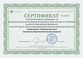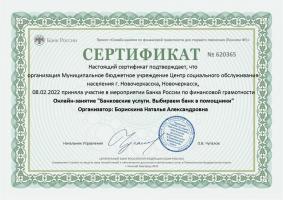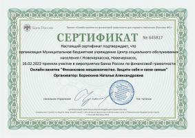 МБУ ЦСОН г.Новочеркасска принял участие в мероприятиях Банка России по финансовой грамотности для граждан предпенсионного и пенсионного возраста. Цель занятий - повышение уровня финансовой грамотности среди пенсионеров, преодоление неуверенности и непонимания современных финансовых технологий, формирование основных принципов и правил принятия решений по использованию финансовых продуктов и услуг. На онлайн - занятиях участники узнали, как безопасно и эффективно пользоваться банковскими слугами, выбирать финансовые инструменты, использовать современные онлайн-технологии и защищаться от мошенников.