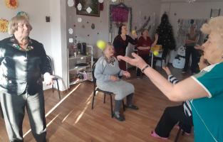 «15» января 2020 г. было проведено групповое занятие оздоровительной гимнастикой при помощи упражнений с теннисными мячами в рамках проекта «ВОЗРАСТ – ЗДОРОВЬЮ НЕ ПОМЕХА» реализуется в рамках благотворительной Программы «Место встречи: диалог», осуществляемой CAF Россия при поддержке Фонда «Память, ответственность и будущее», из исходного положения сидя и стоя под музыкальное сопровождение. Сюда вошли упражнения с мячами в движении, упражнения для повышения подвижности пальцев кисти и рук и на развитие координации движений с подбросами мяча и с отскоком мяча от пола на различную высоту. Занятие были дополнено упражнениями на развитие мышц пресса, спины, а также профилактику шейного и грудного остеохондроза и работа в парах. После этого был сделан 15-минутный перерыв между занятиями.