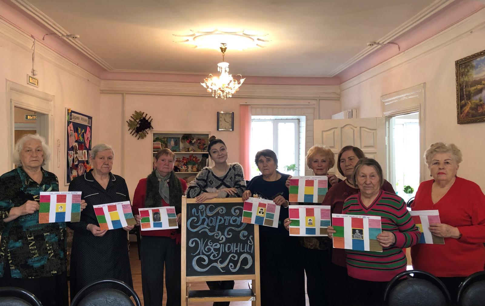 1. 21.01.2019г. – На базе МБУ ЦСОН г. Новочеркасска состоялось очередное занятие по «Биографической работе с памятью» в рамках проекта «ПОВЫШЕНИЕ КАЧЕСТВА ЖИЗНИ, СОХРАНЕНИЕ И УКРЕПЛЕНИЕ ЗДОРОВЬЯ НОВОЧЕРКАССКИХ ЖЕРТВ НАЦИОНАЛ – СОЦИАЛИЗМА» реализуется в рамках благотворительной Программы «Место встречи: диалог», осуществляемой CAF Россия при поддержке Фонда «Память, ответственность и будущее». Занятие по биографической работе с памятью было посвящено созданию «Карты визуализации»..